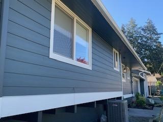 Our crew removed all of the previous siding material in the areas that needed replacement only and installed James Hardie Color Plus Statement Collection siding to the affected areas. They also determined that only a Color Plus Finish paint job was needed, rather than an entire exterior re-paint of the hone. With our detailed matching and design service, we were able to ensure that the newly remodeled spots on the home would blend beautifully with the existing siding.